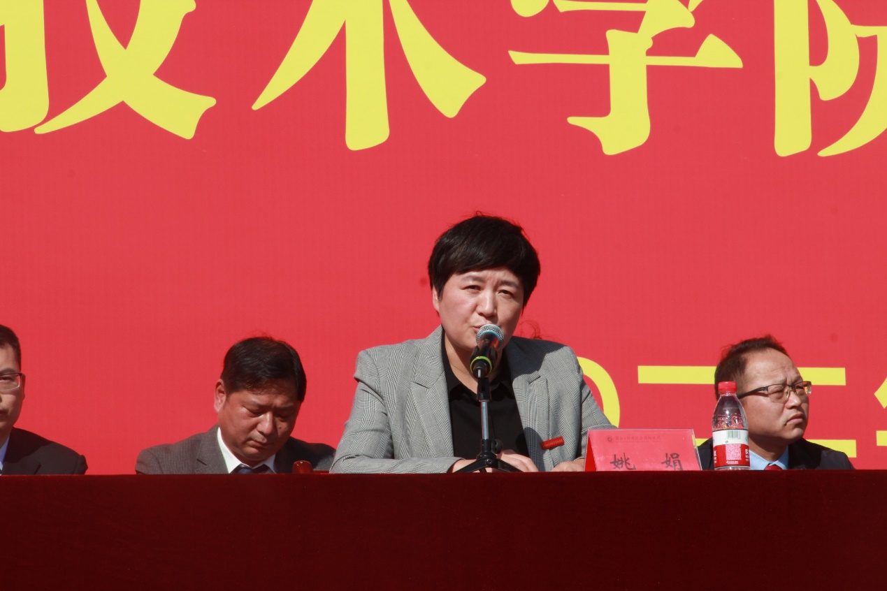 在典礼最后,姚娟深情寄语同学们:要不负青春,不负韶华,以青春之我,自强之我,奋斗之我,放飞人生梦想,书写绚烂无悔的青春华章。她希望同学们一定要牢记李院长的教诲:在大学期间应该追逐梦想,确立一个目标;要慎思好学,养成一种习惯;要善作善为,练就一身本领。