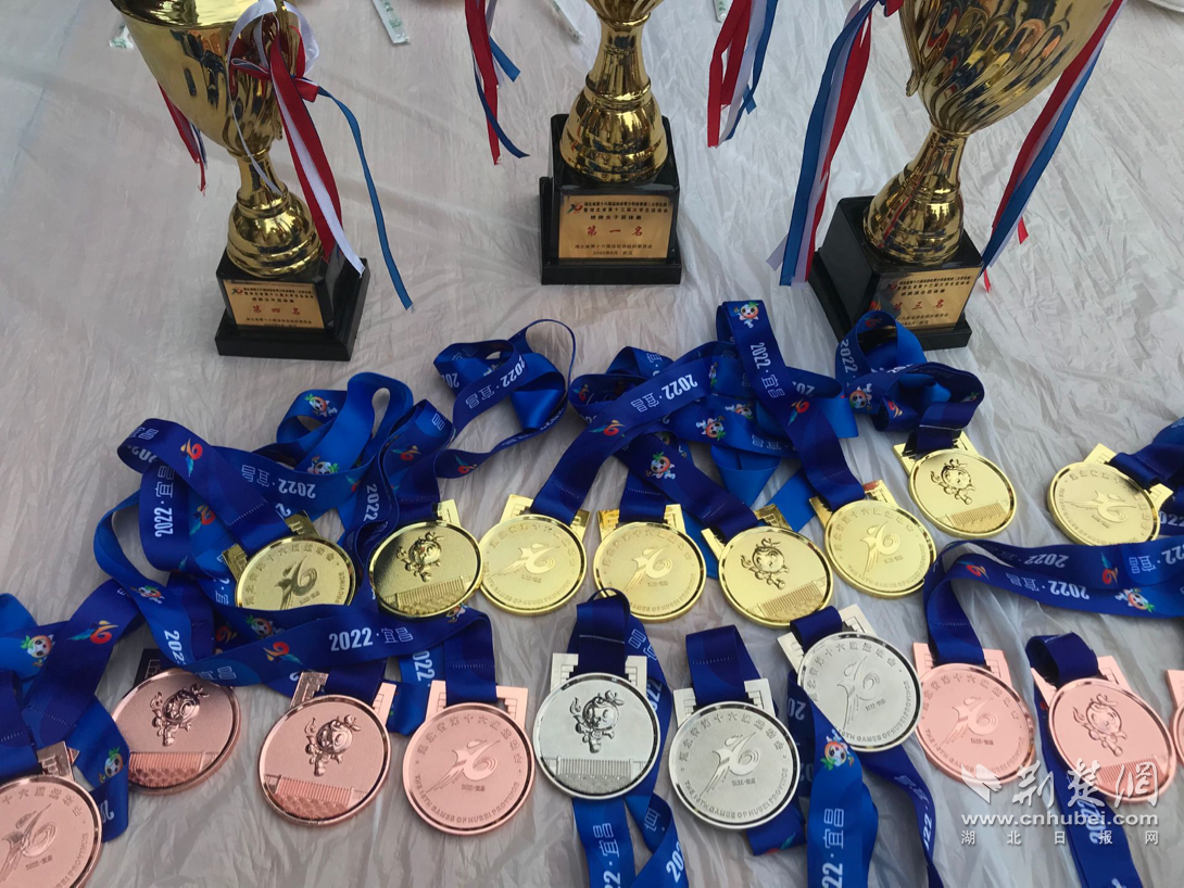 桥牌队获奖奖牌及奖杯。学校供图