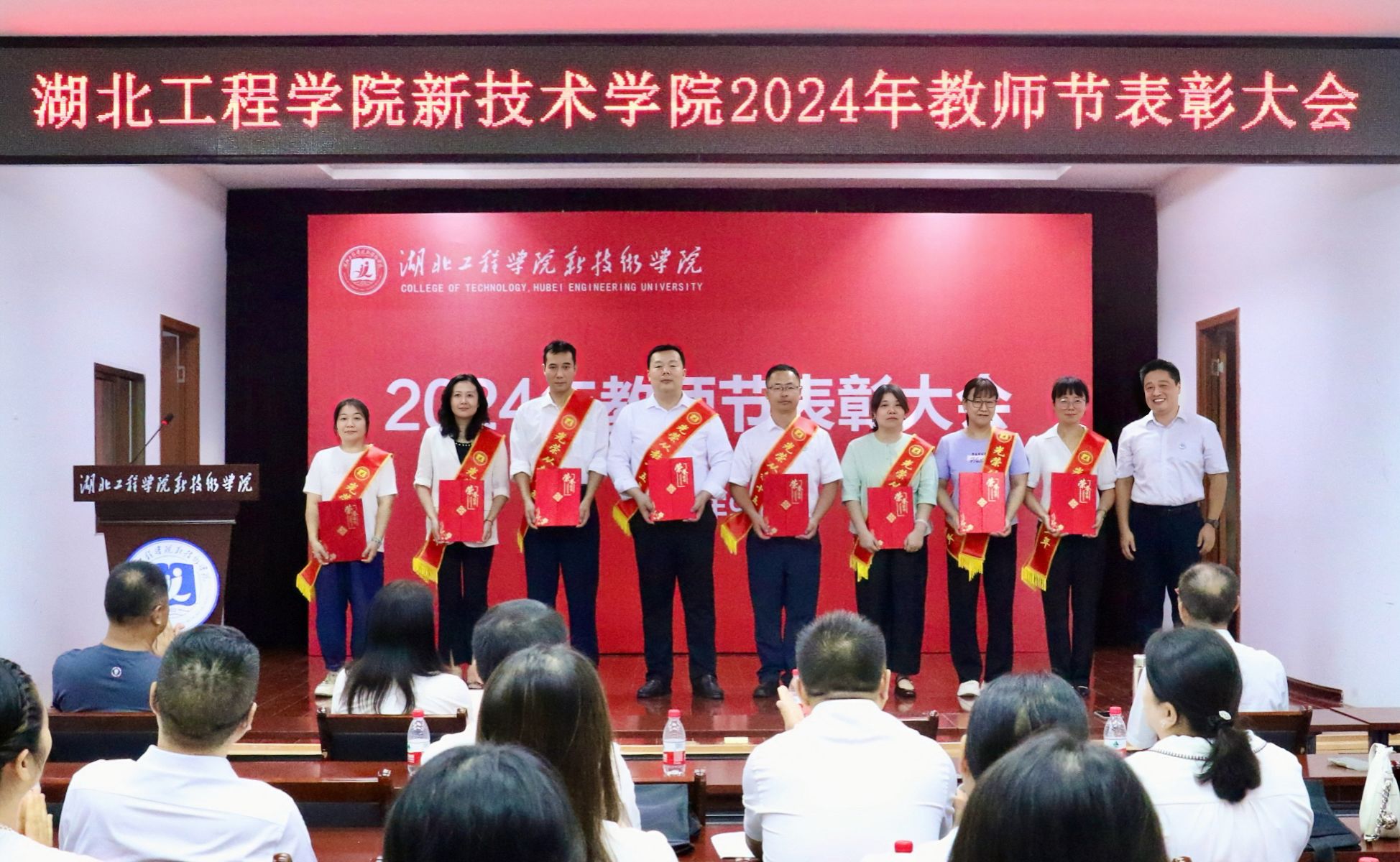 院长张辉为“从教15年”教师佩戴绶带并颁发荣誉证书。新入职教师代表向“从教15年”教师代表献花。党委书记欧阳莎莉为第一届“师德先进个人”教师颁发荣誉证书。学生代表向获得第一届“师德先进个人”荣誉的教师献花。