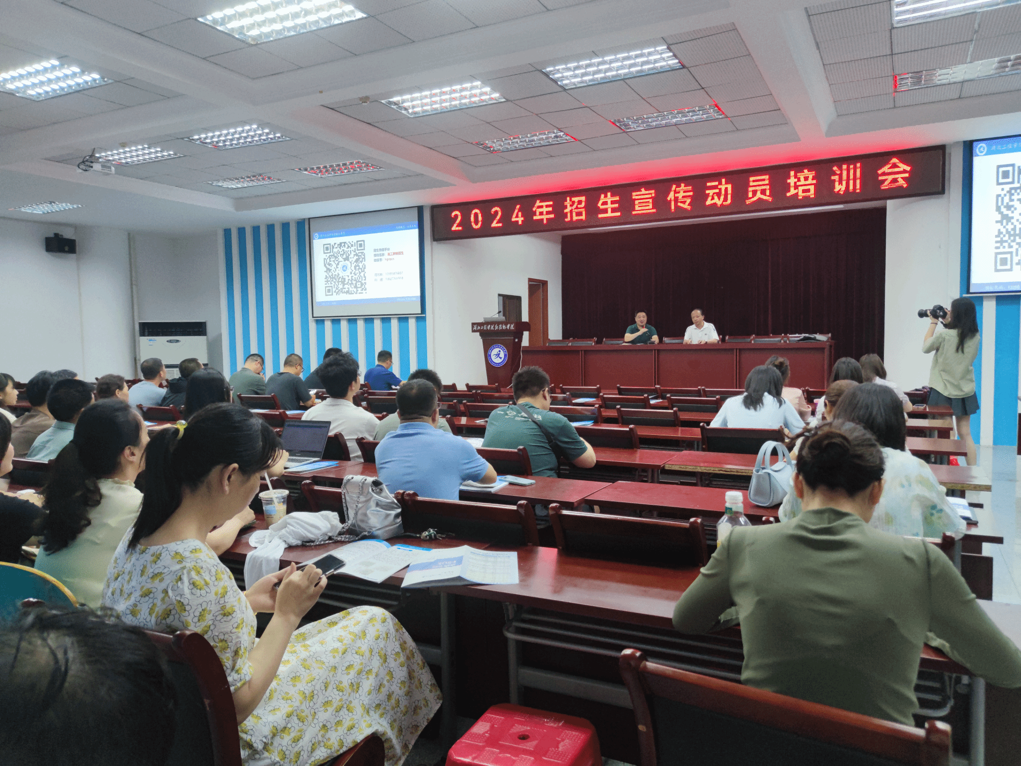 本网讯 6月21日下午,Beat365在科技楼报告厅召开2024年招生宣传动员培训会。院长张辉,党委副书记赵前进,全体招生宣传教师参会,会议由赵前进主持。