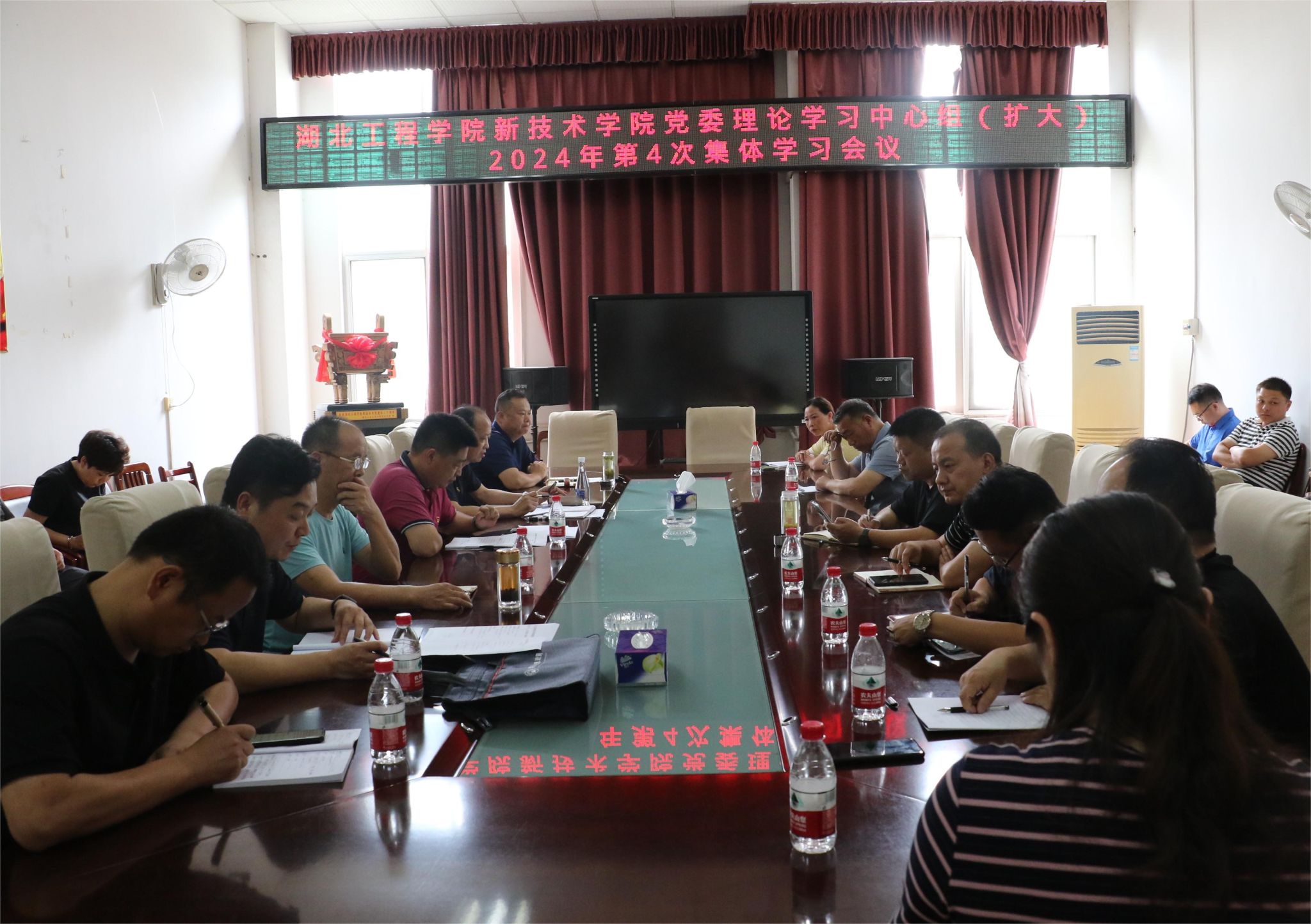 本网讯 6月20日下午,学校在同大综合楼二楼会议室召开党委理论学习中心组(扩大)2024 年第 4 次集体学习。院长张辉,党委副书记赵前进,副院长陈友华,派驻纪检员王华,党委委员,中层正职,各党支部书记参加学习。会议由院长张辉主持。