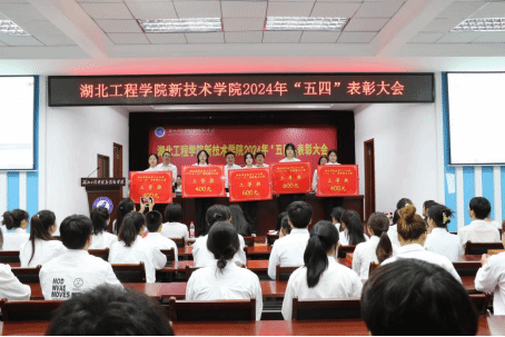 伴随着雄壮的国歌声,大会正式开始。团委主要负责人宣读表彰文件。校领导依次为荣获2023-2024学年度优秀团干部、优秀团员、优秀青年志愿者代表、先进团支部代表、第七届“我身边的好团支书”代表、优秀青年志愿者协会分会代表、优秀“五四红旗团总支”代表及在省级以上竞赛中获奖的集体和个人颁奖。