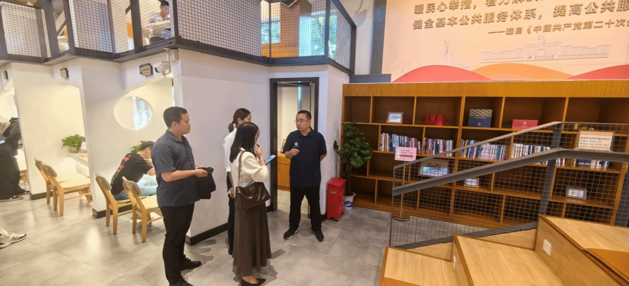 在华中科技大学,蒋成一行实地参观了师生服务中心,详细了解了“一站式”学生社区建设情况,并与相关工作人员进行了细致交流。