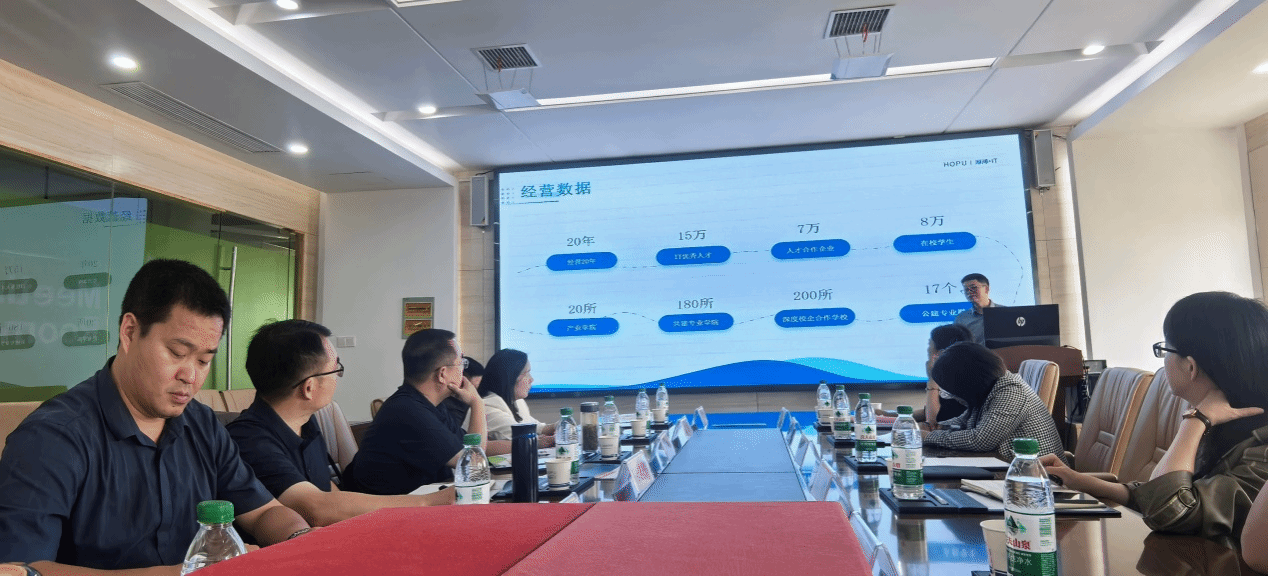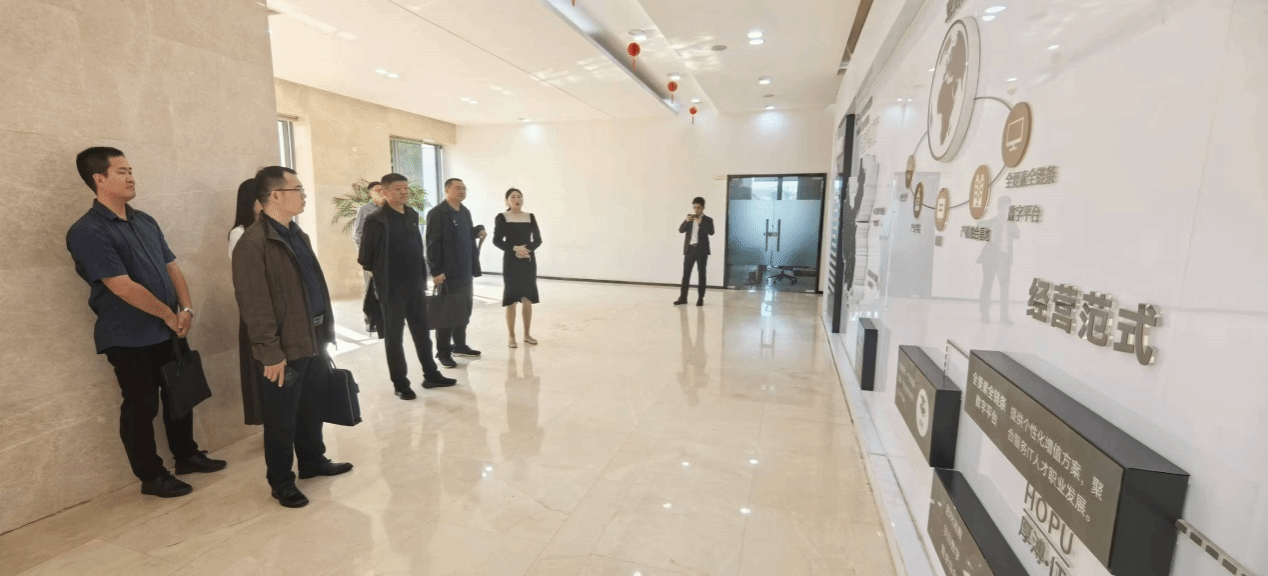 蒋成一行首站来到武汉厚溥花山公司,受到武汉厚溥数字科技有限公司总经理李巧灵、教学总监吴静、职业发展总监陈慧、大客户经理关婷、项目经理胡创等热情接待。