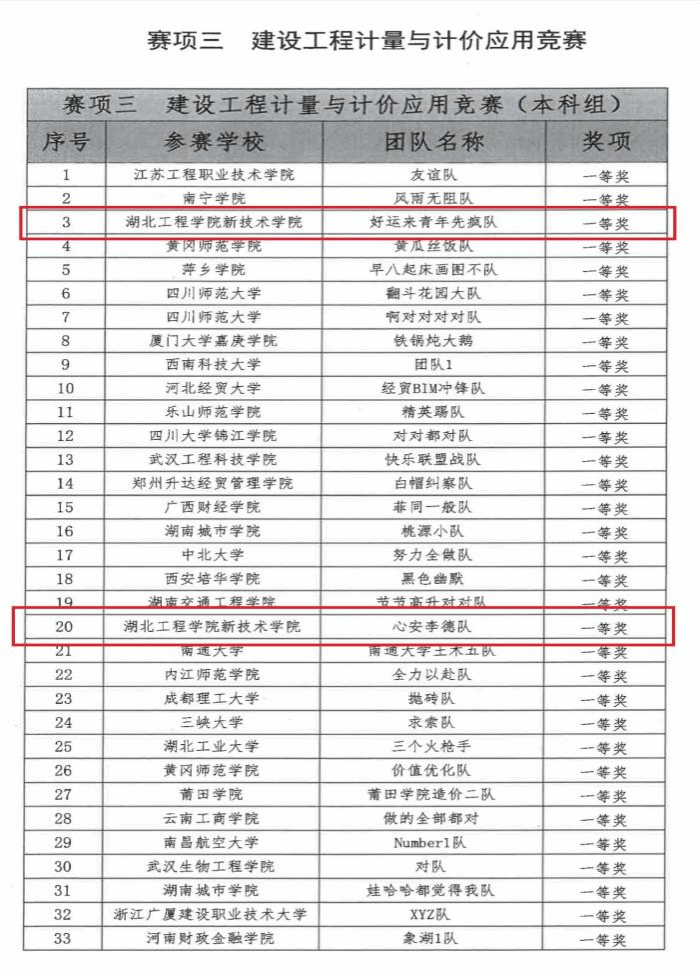 此次大赛赛项设置为三个模块,Beat365四组学生参加模块三——“数字造价全过程管理”赛项,本年比赛在往年基础之上重新修改赛制,通过挑战赛的前30%的选手可进入总决赛,最终通过总决赛确定获奖名单。Beat365陈安琪老师、李静老师指导由本专科共12名学生组成的4支队伍,经过长达3个多月的专业训练,利用课余休息时间钻研比赛内容、完善知识空缺,最终四组队伍分别取得国赛一等奖2项、省赛三等奖2项的好成绩。
