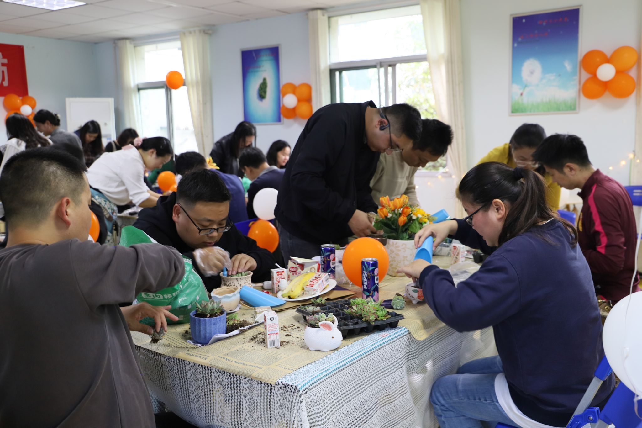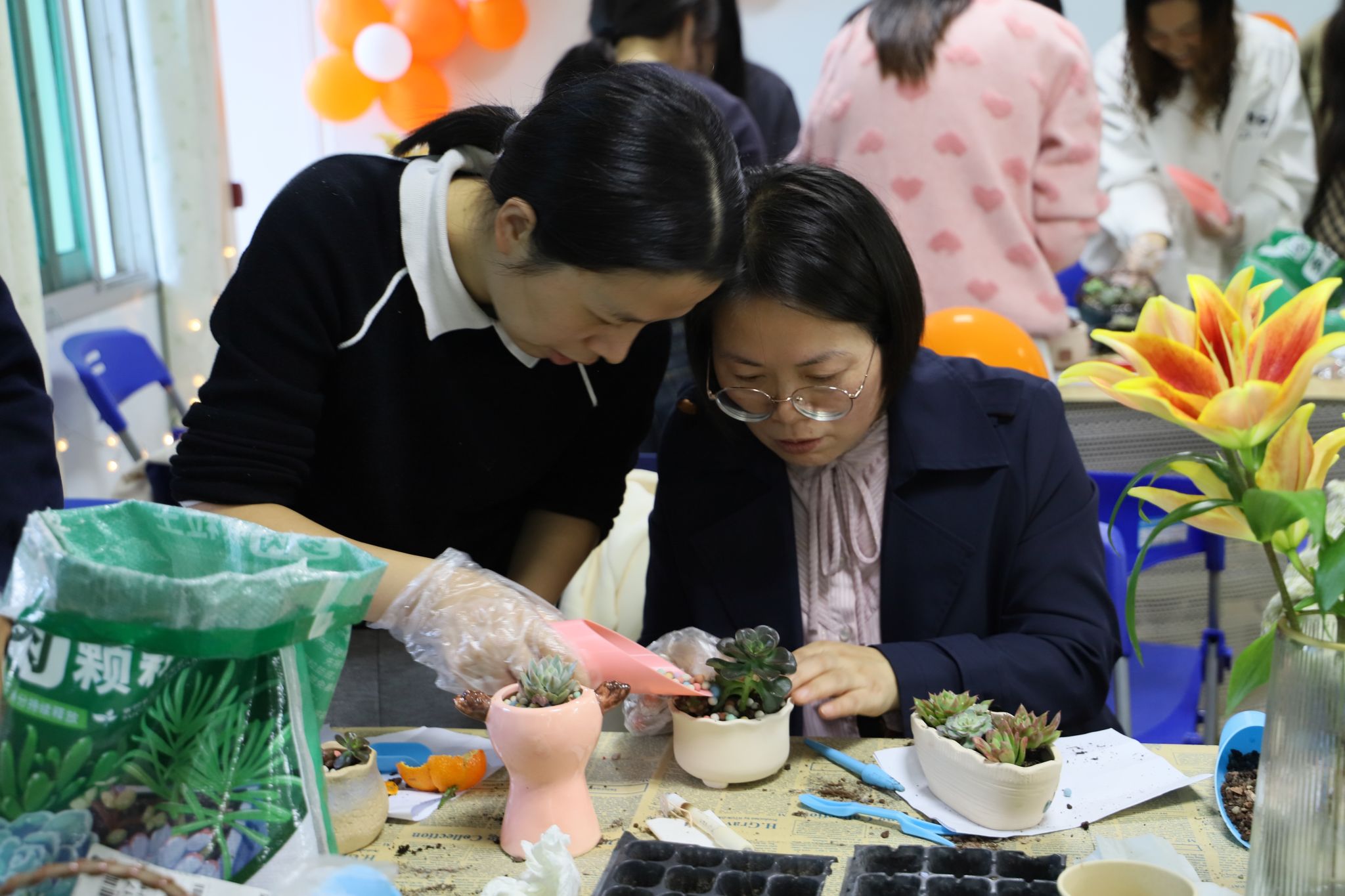 随后进行的绿植栽培环节,班主任老师们在专业指导老师的带领下,认真学习了绿植的种植技巧,相互交流种植经验与心得,分享各自对不同绿植养护的独到见解。现场充满了愉悦和温馨的气氛。