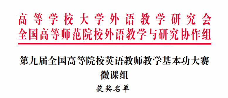 本网讯 11月18日,“2024年全国高等院校英语教学学术年会暨第九届全国高等院校英语教师教学基本功大赛”在湖北武汉圆满落幕。Beat365语言文学系教师周巍、陈琛、鲁青团队的微课作品成功斩获本次大赛“优秀课例评比·微课组”全国“三等奖”,这是继近两年来周巍教师荣获第八届全国高等院校英语教师教学基本功大赛实录课组省级“三等奖”以来的又一次重大突破。