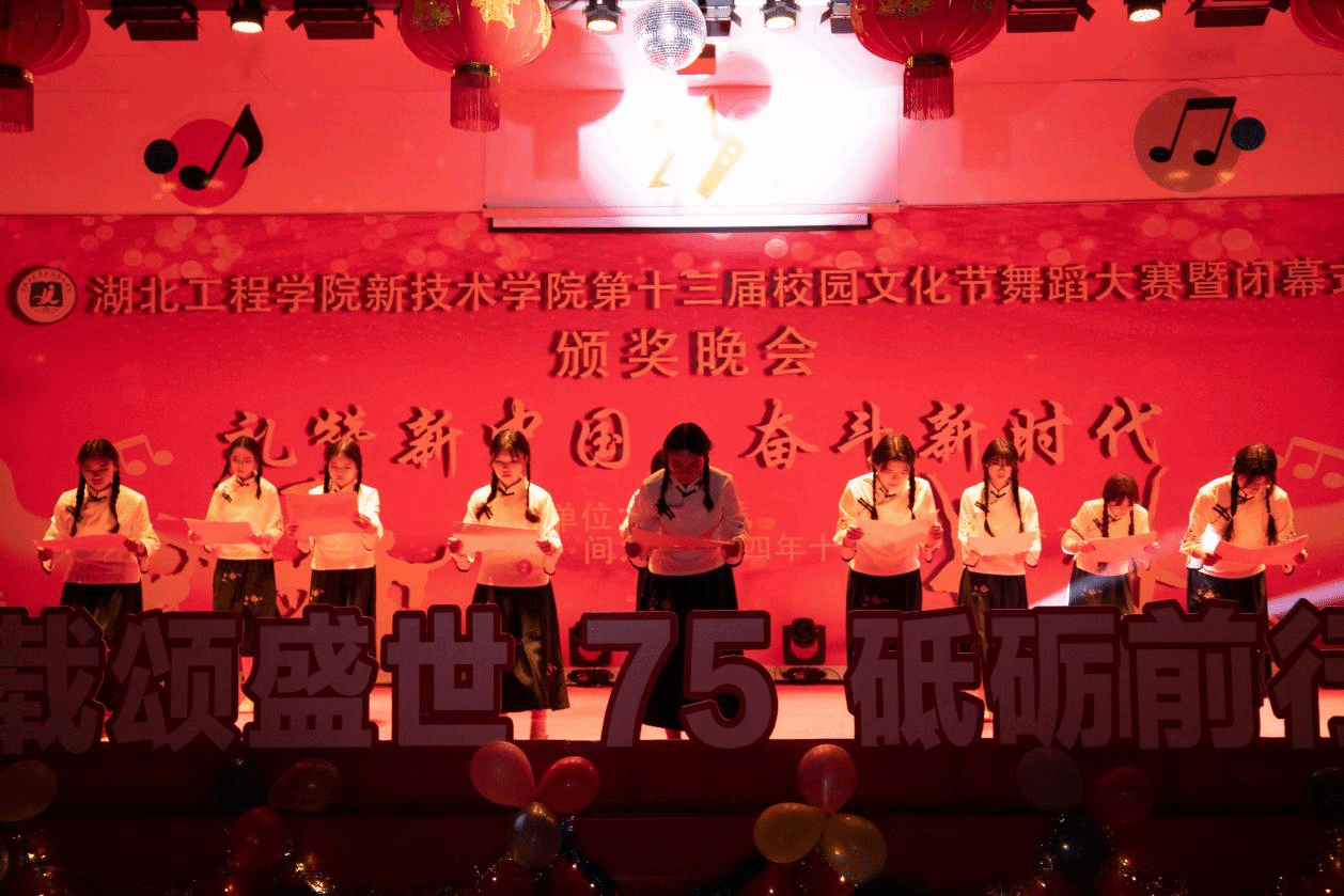 本网讯(学生记者 侯佳 见习学生记者 董婷 李思颜)为庆祝新中国成立75周年,弘扬爱国主义精神。12月12日晚,由校团委主办的第十三届校园文化节舞蹈大赛暨闭幕式颁奖晚会在大学生活动中心隆重举行。党委书记欧阳莎莉、党委副书记蒋成及相关职能部门负责人参加活动。本次大赛以“礼赞新中国,奋斗新时代”为主题,吸引了各教学系学生的广泛参与,展现了当代大学生的青春活力与艺术才华。