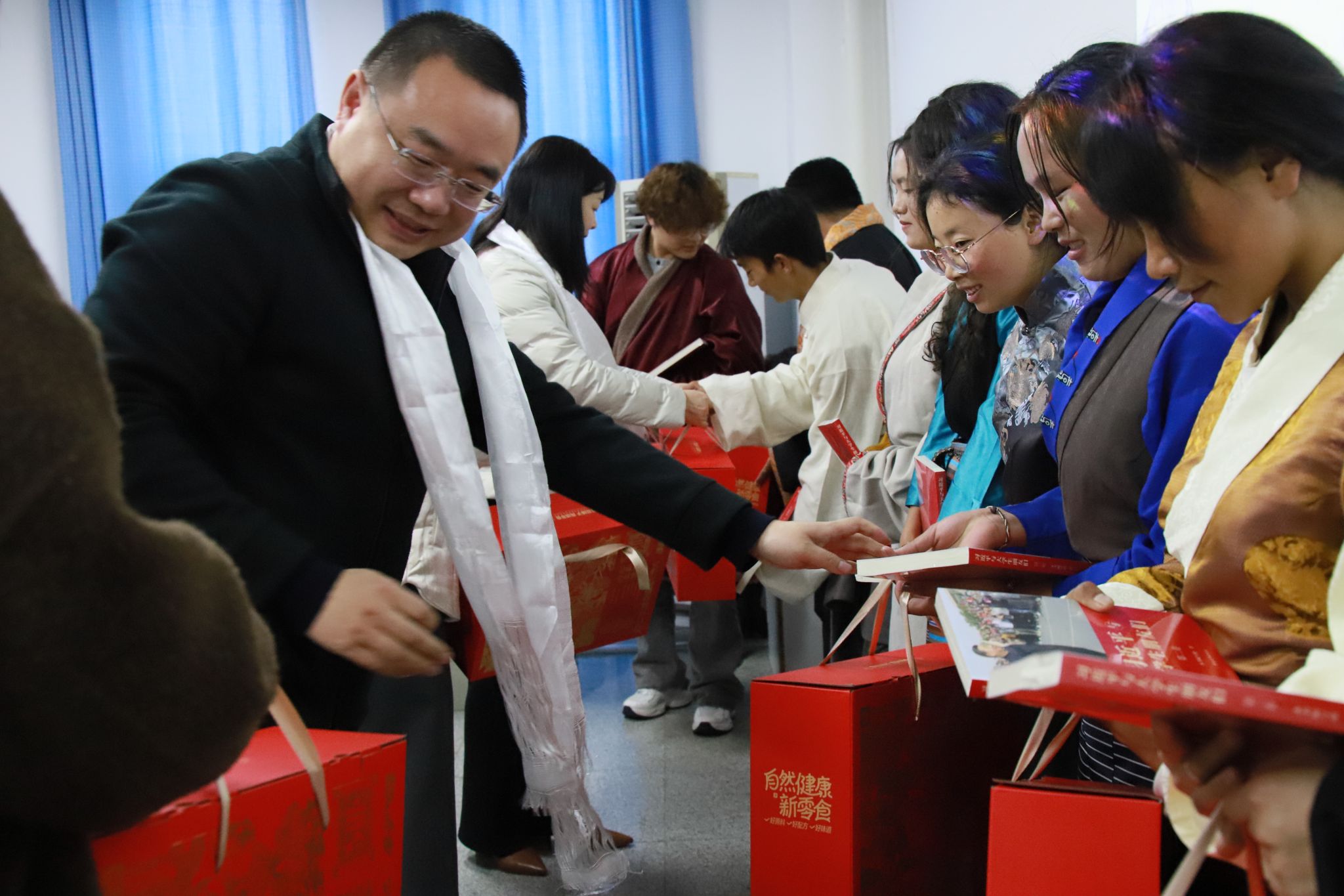 党委书记欧阳莎莉寄语西藏同学,要铸牢中华民族共同体意识,做维护民族团结的践行者;要珍视机会,勤奋学习,早日成才,做建设家乡、报效祖国的新时代好青年。最后,她用藏语“扎西德勒”向藏族同学们送上诚挚的新年祝福,祈愿大家新的一年顺遂如意。