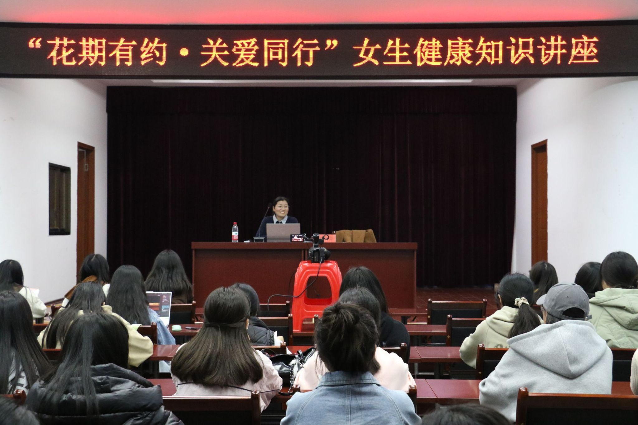 本网讯(学生记者 周锦雯 见习学生记者 欧阳文祺 方妍)为提升大学生健康知识水平,加强对女大学生的心理关怀,3月21日,学校在科技楼五楼报告厅开展“花期有约·关爱同行”女生健康教育讲座。讲座由学生工作部(处)主办,孝感市中心医院产科副主任蔡大芬担任特邀主讲人,在校女生代表参加。