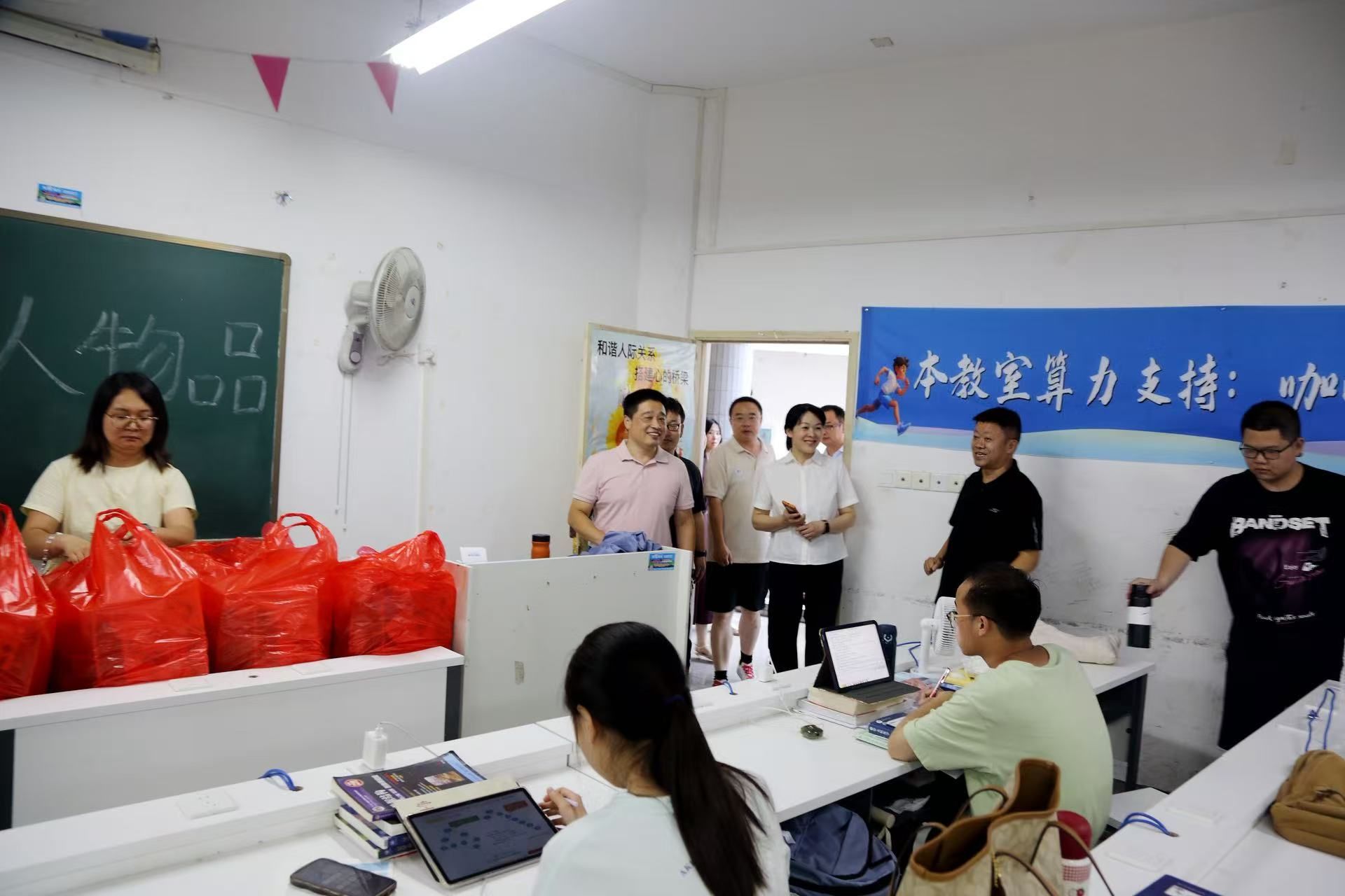本网讯 7月9日,学校领导深入校园考研自习室等场所,看望暑期留校备战考研和竞赛培训的学生,为大家送去关怀与鼓励。