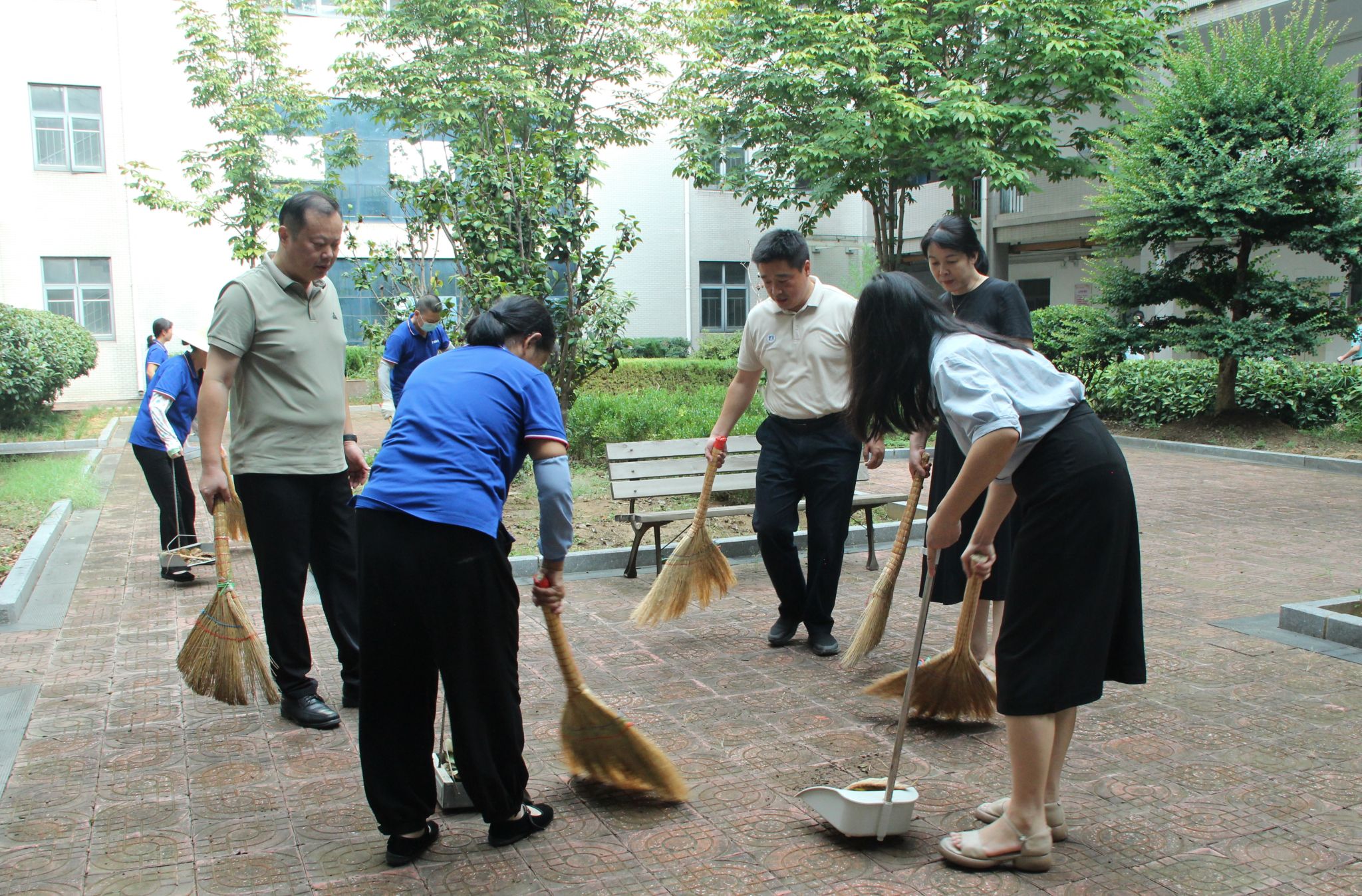 学校要求各单位负责人担责,动员全员参与,消杀规范操作护安全,以整洁校园迎新学期。
